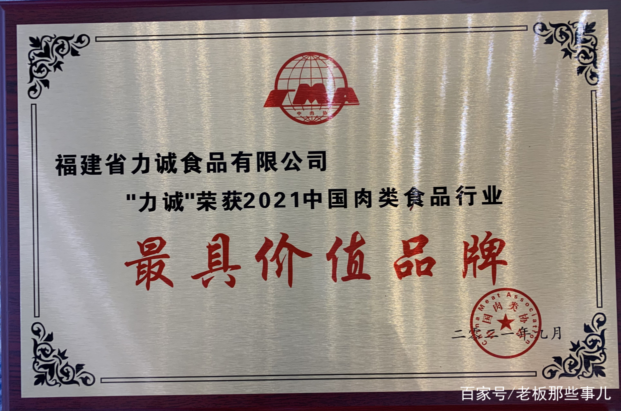 笔者从会上获悉,总部位于晋江五里工业区的华体会正规平台(以下简称“力诚食品”),先后荣获2021年度中国肉类食品安全信用体系建设示范项目信用体系示范企业、2021年中国肉类食品行业先进企业以及2021年中国肉类食品行业最具价值品牌三大重量级奖项。